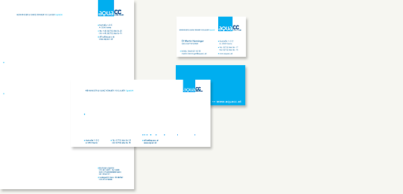 Das niederösterreichische Kulturtechnikbüro AQUACC, das Kläranlagenkonzepte entwickelt und umsetzt, bekam ein komplettes Corporate Design. Logo, Geschäftsdrucksorten, Produktbroschüren und Türschilder sind aus einem Guss.