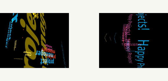 Zu Beginn der Konferenz »pmtage« im Jahr 2004 fand die Performance »I Love Noise« statt. Begriffe aus dem Themenbereich »Projektmanagement« wurden auf Basis des Musikstücks »I’m happy, and I’m singing, and a 1-2-3-4« von Jim O’Rourke in Bewegung gesetzt. Eine stimmige Interpretation eines typischen Projekt-Ablaufes. Die Präsentation wurde live gespielt.