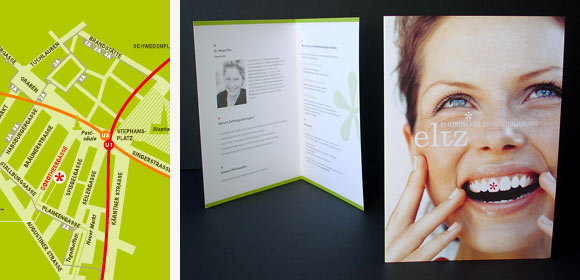 Bitte lächeln! Schöne Zähne haben geht ganz einfach und muss nicht weh tun. Das 2006 von Dr. Maija Eltz gegründete Zentrum arbeitet mit einer neuen Methode zur Regulierung der Zähne. Wir entwickelten ein Corporate Design das zeigt, dass man bei Dr. Eltz wieder gerne lächelt.